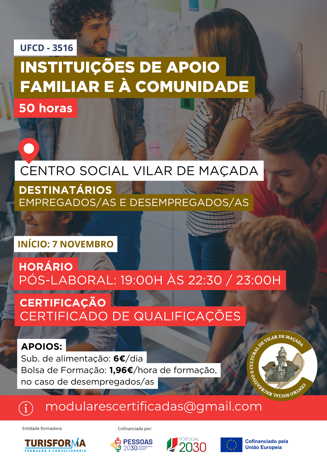 HomeFormaçõesUFCD - 3516 - Instituições de Apoio Familiar e à Comunidade - Turma 7 Vilar de Maçada